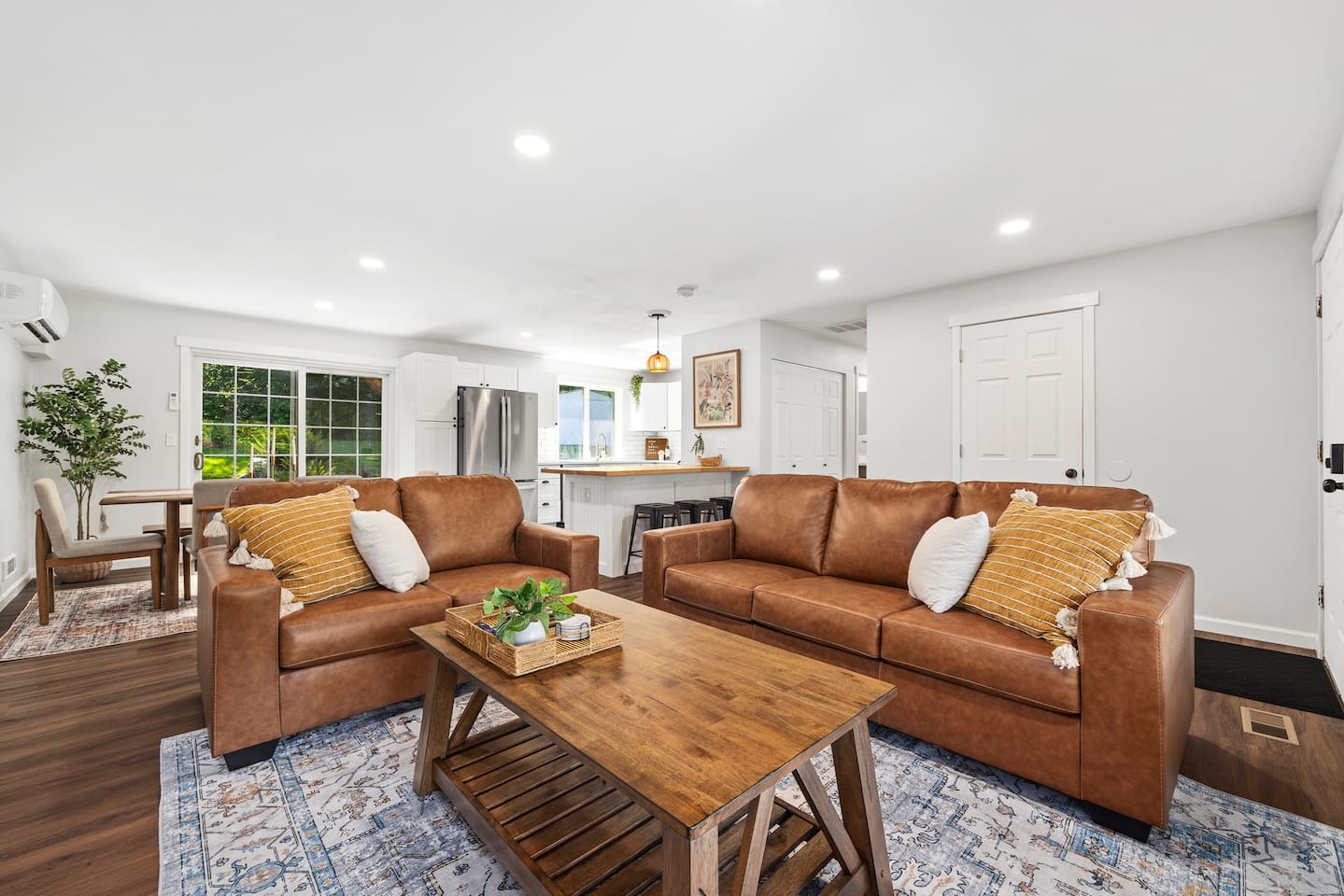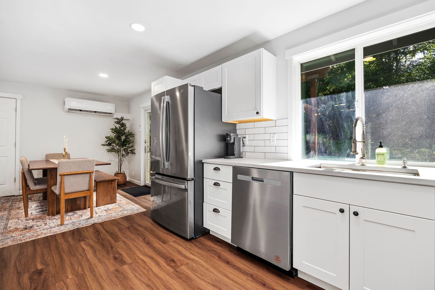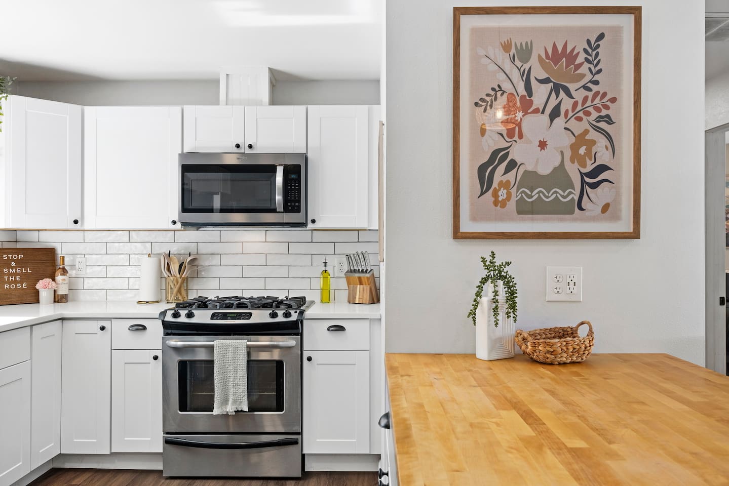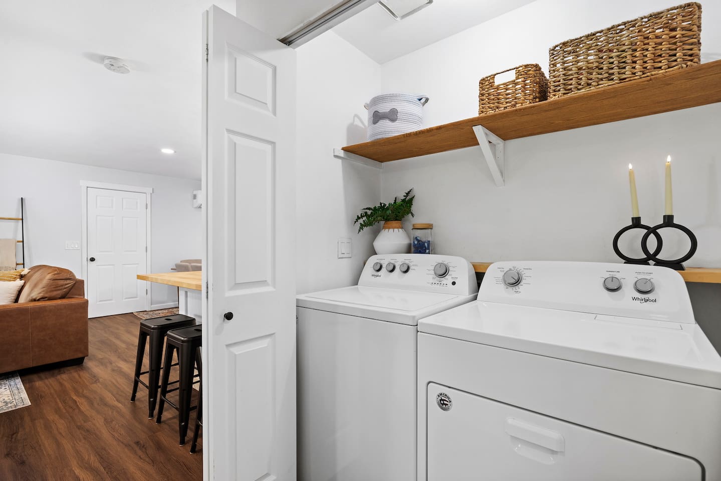 This charming duplex offers the perfect blend of comfort and convenience, ideal for groups or families who want to stay together while still having their own private spaces. With two fully-equipped units, this property can be rented individually or as one large home to accommodate your needs. With this listing you are renting BOTH units! Unit A (3bd/1bth): The primary bedroom features a luxurious memory foam King-size bed with serene backyard views. Two additional bedrooms each have comfortable memory foam Queen-size beds. All rooms come with closets and hangers provided. Unit B (2bd/1bth): The primary bedroom offers a memory foam Queen-size bed with lovely views of the backyard and patio. The second bedroom has a comfortable memory foam Full-size bed. Both rooms have closets with hangers provided. BOTH kitchens are equipped with new stainless steel appliances, large farmhouse-style sinks, dishwashers, microwaves, toasters, and Keurigs (complimentary coffee, tea, and sugar provided). Everything you need for a home-cooked meal is at your fingertips. Both units share access to the serene backyard and patio area, where you can enjoy your morning coffee or an evening glass of wine on the comfortable patio furniture. Whether you’re planning a quiet retreat or a family gathering, our duplex offers all the comforts of home with the added convenience of separate living spaces. Book your stay today and experience the perfect blend of privacy and togetherness!