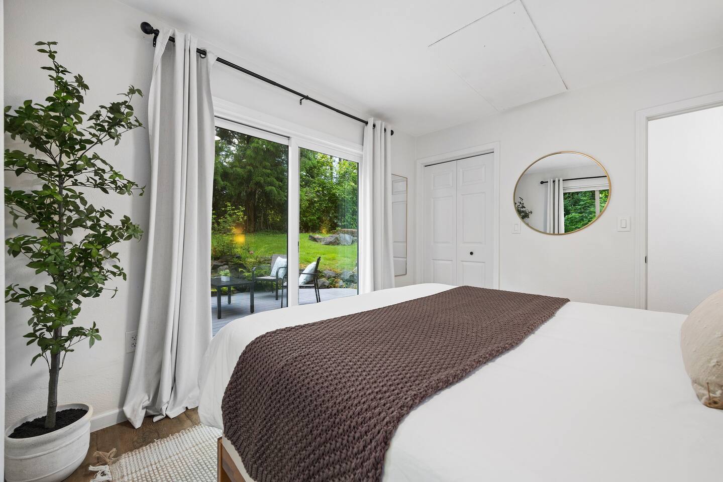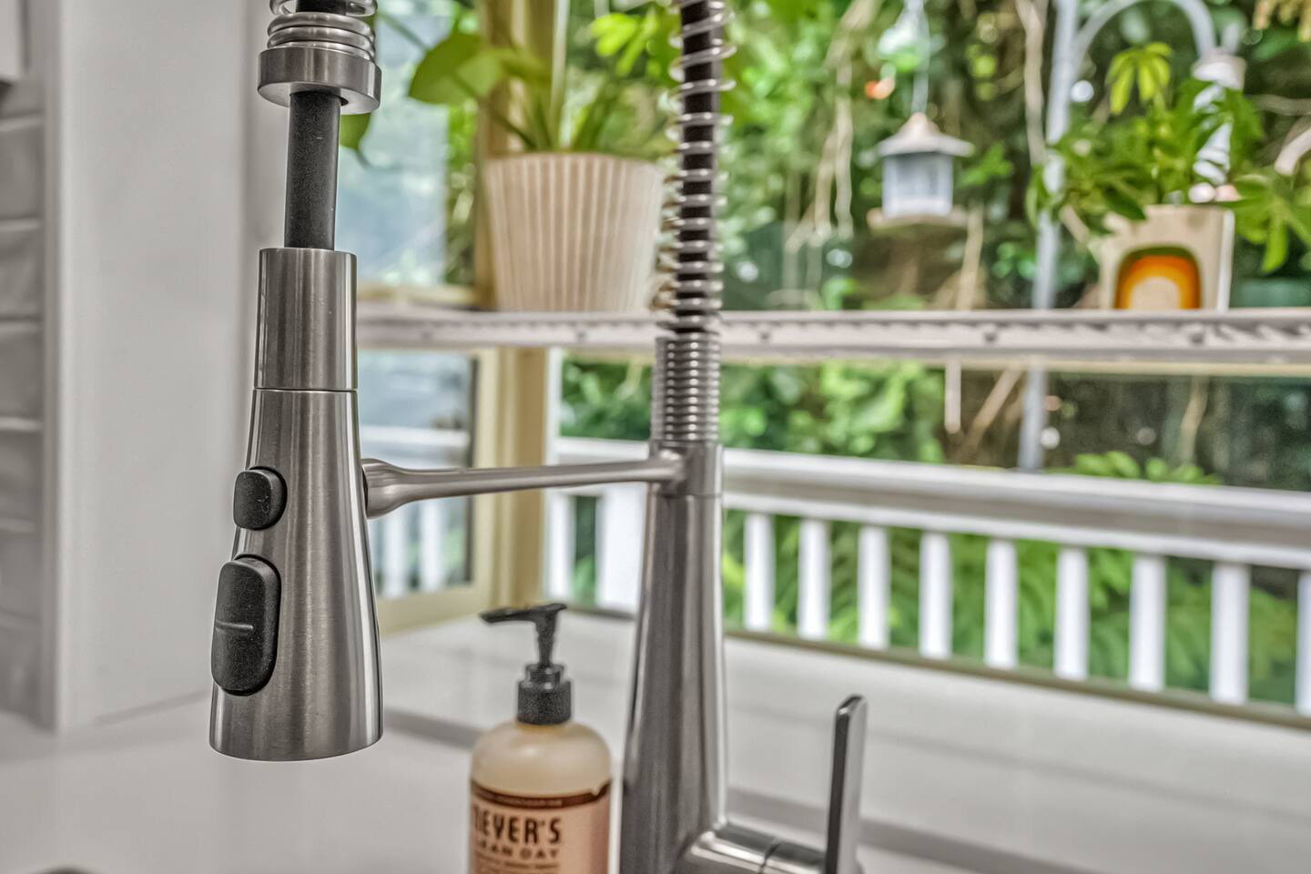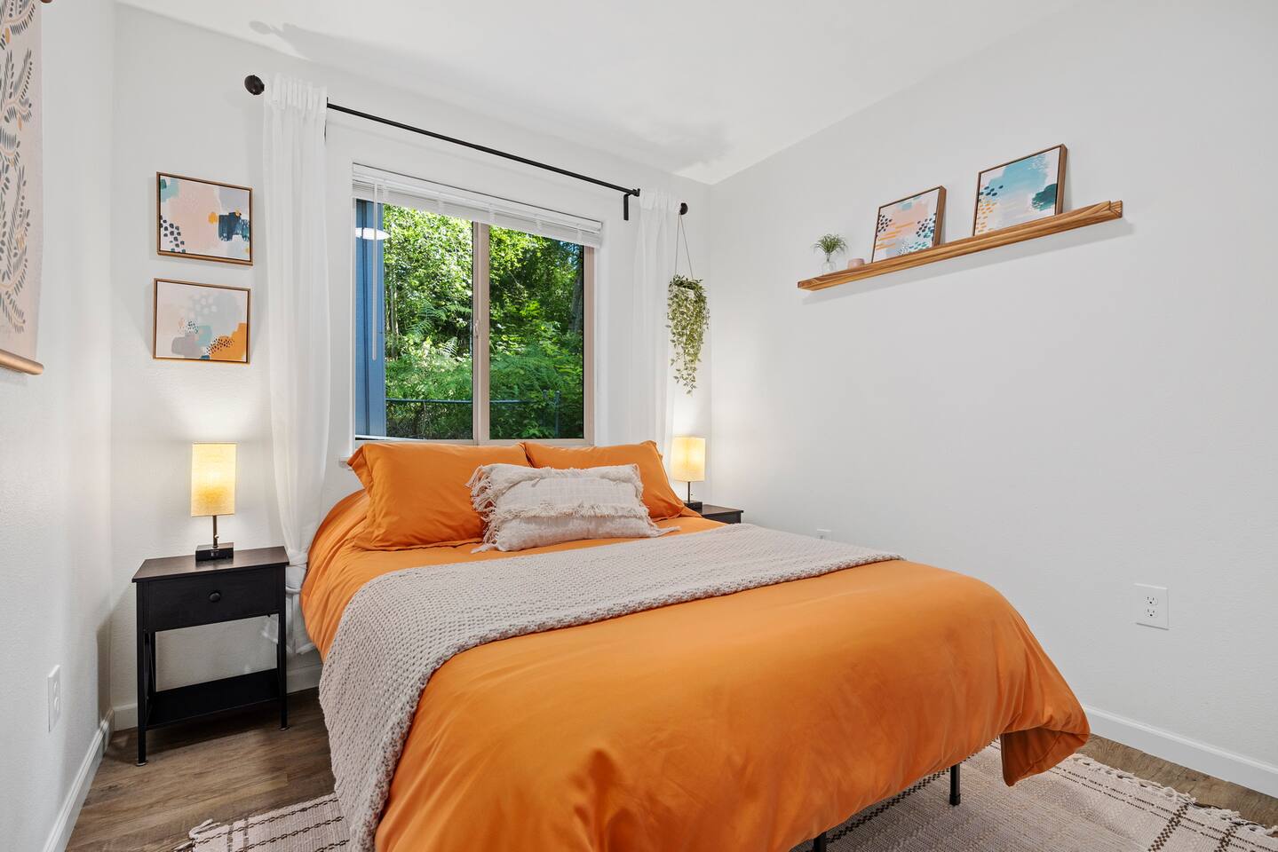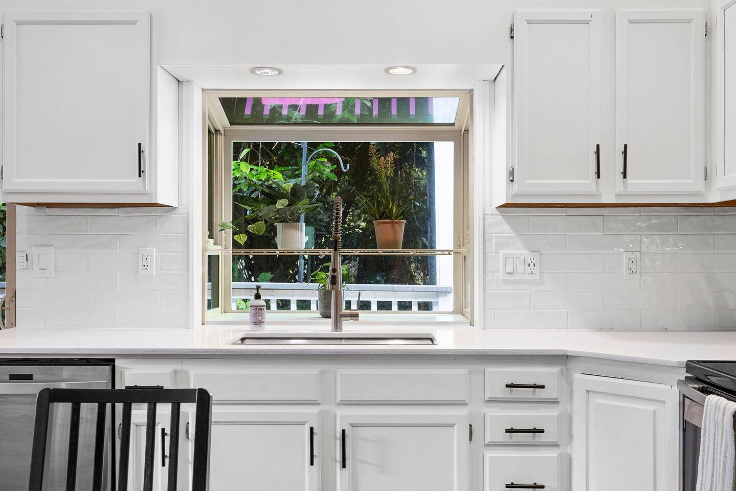 The primary bedroom has a memory foam Queen-size bed with views looking out to the serene backyard and patio. Sit back on the comfortable patio furniture with your morning coffee from the Keurig, or enjoy the evening sun with a glass of wine from one of the many local wineries nearby. The second bedroom has a memory foam Full-size bed. Both rooms have closets with hangers provided. The couch in the living room pulls out to make a Full-size bed if you have extra guests (please keep in mind there will be a fee for any additional guest over 4). Extra linens, pillows and blankets can be found by opening up the chase on the couch. Lay back and catch up on all your favorite shows on the 65" Smart TV. We have an A/C unit in the living room that cools the whole house, extra fans or heaters can be found in the coat closet by the front door. The kitchen is equipped with new stainless steel appliances, large farmhouse style sink, dishwasher, microwave, toaster, Keurig (with complimentary coffee, tea and sugar), and all the necessary cookware to create delicious home-cooked meals during your stay. Fast WiFi: 300mbps