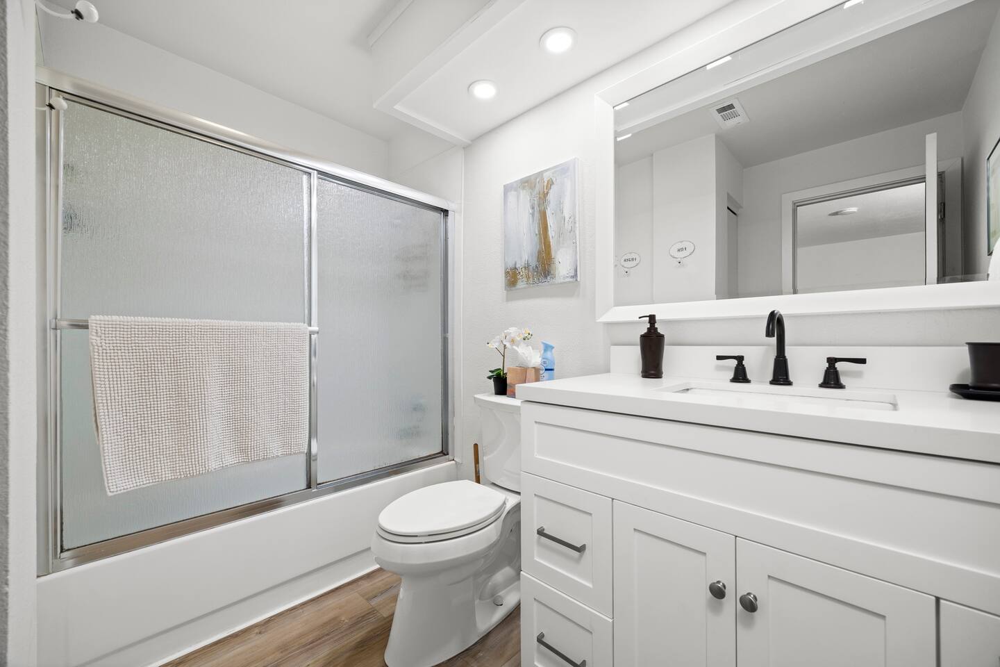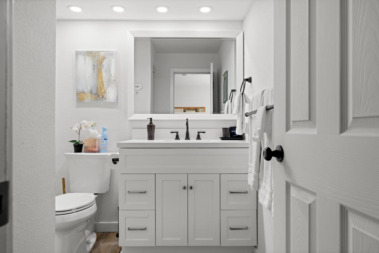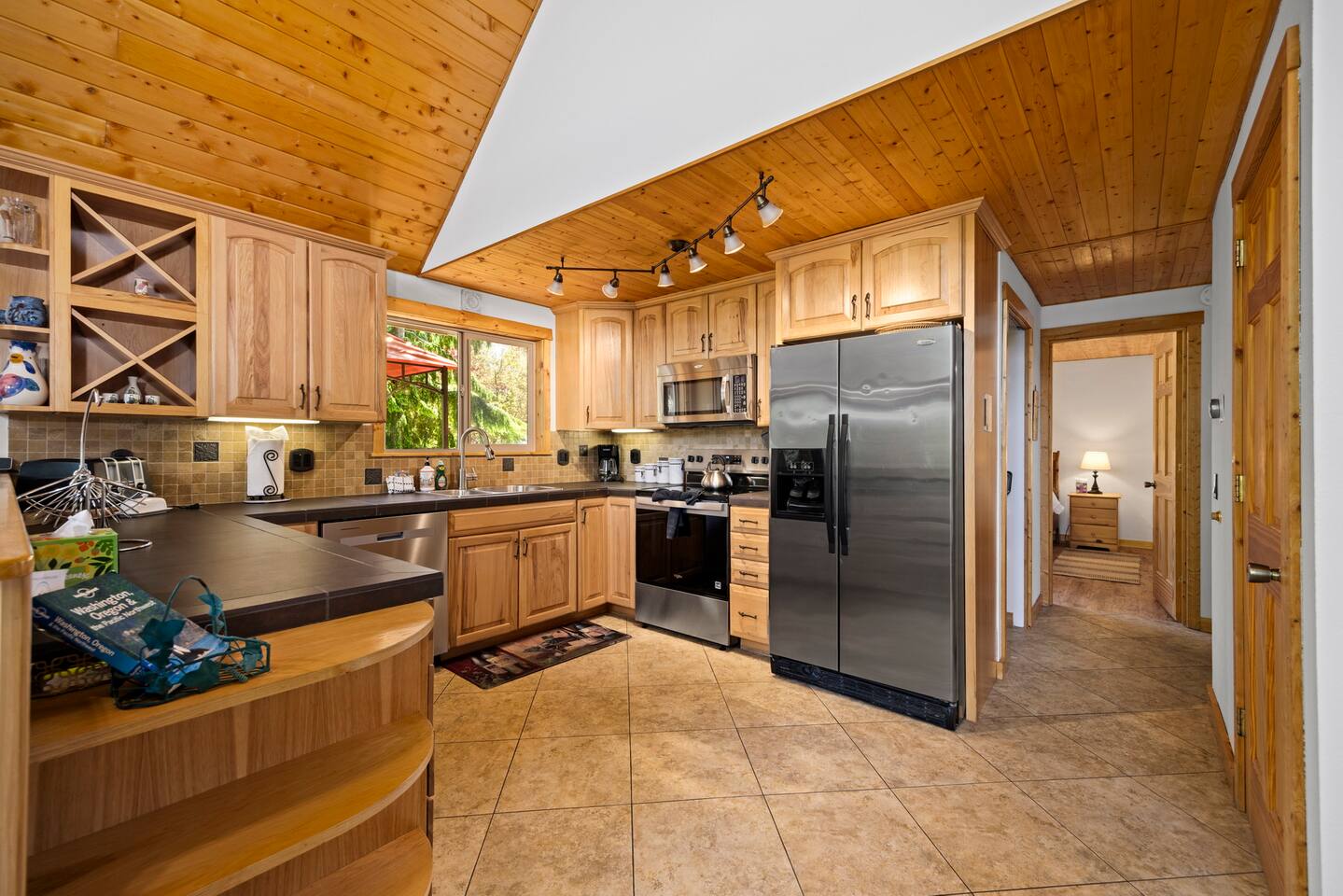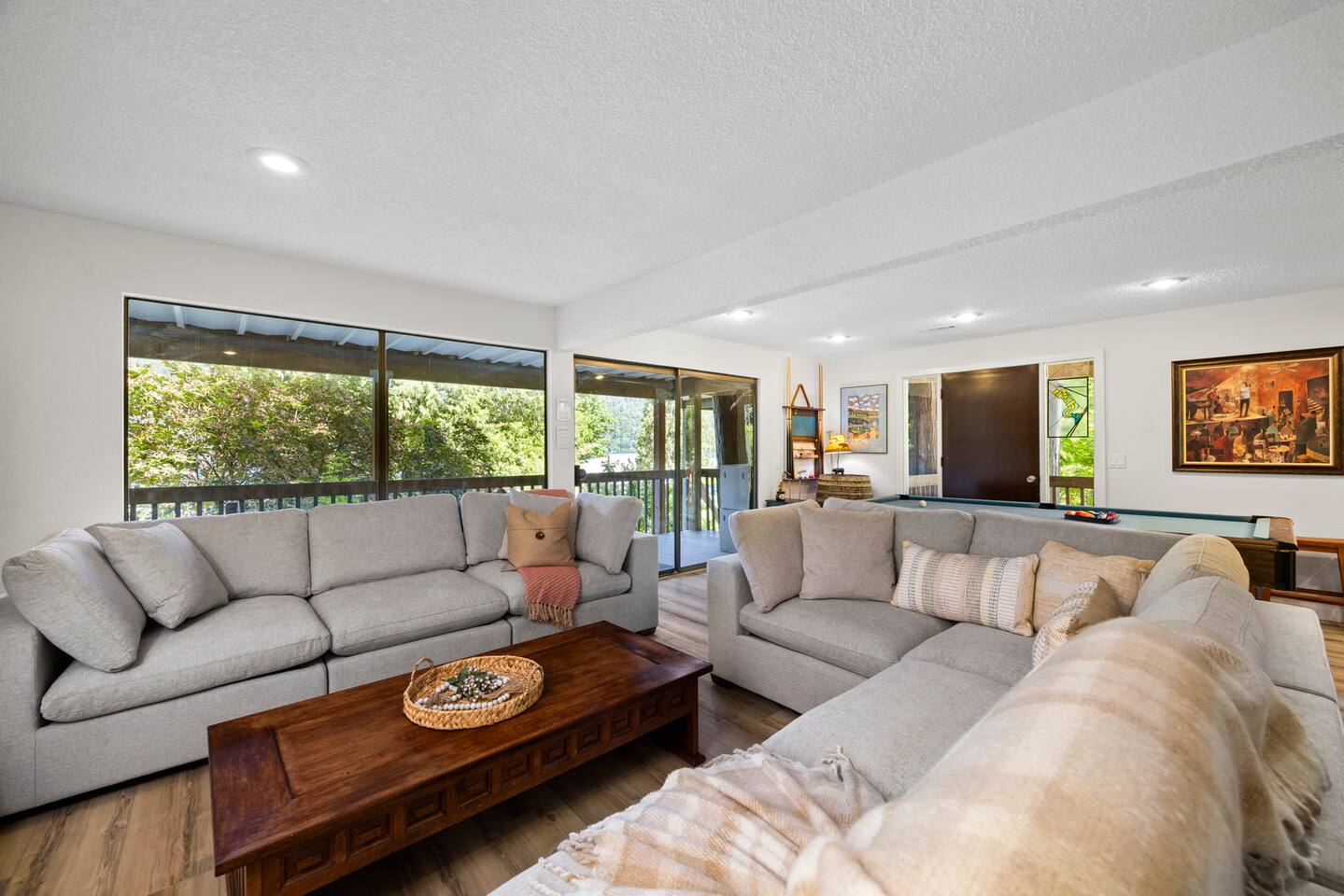 Whether you spend your days lounging by the lake or exploring nearby attractions, Lake View Chalet is the ultimate destination for an unforgettable vacation - family-friendly, pet-friendly, and breathtaking lake views! Across the street you'll find Sofield Park, offering a large grassy lawn and a sandy beach perfect for relaxing and swimming - kayaks and paddle boards are provided! Walking distance from the Marina, dog park, and a 18-hole championship golf course open to the public. Minutes from world-class mountain biking and hiking trails. There's no shortage of fun & activities here! Parking for up to 4 vehicles with FREE EV CHARGING! The three-level fully furnished home is designed for comfort and convenience. The main floor is bright and airy with an open-concept living and dining room, fully-equipped gourmet kitchen, and 3 sets of floor-to-ceiling sliding glass doors that open up to a private 700sqft wraparound deck offering stunning lake views, outdoor dining and a gas firepit and BBQ. There are two bedrooms on the main floor both with Queen-Size beds and private en-suite bathrooms. The primary bedroom on the lower level features a King bed, a private en-suite, and a desk set up as a dedicated workspace. The lower level family rec room is equipped with a flat-screen TV with all the streaming services, stereo, pool table, wet bar, and a 300 sqft deck through double sliding glass doors. The upper level of the home provides sleeping arrangements for up to 8 guests. The open loft area has a bunk bed, with a twin bed on top and double bed on bottom, and full bathroom that will always be available to guests. There is a 5th Bedroom that includes a double bed + three single beds. Enjoy the convenient location, with Downtown Bellingham just 20 minutes away, the US/Canada border 35 minutes away, Seattle and Vancouver BC Canada 1.5 hours away, and 1.5 hours to Mt. Baker.