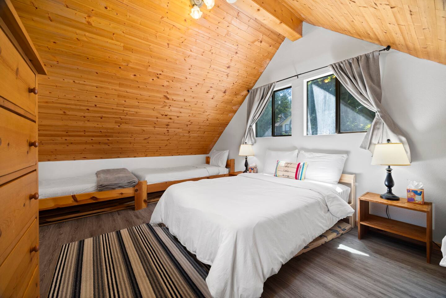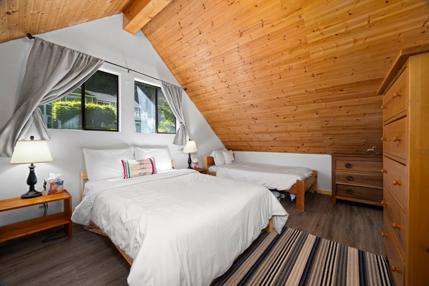 Escape to Lake View Chalet, a spacious A-frame home nestled in peaceful Sudden Valley, Bellingham. This stunning retreat offers breathtaking views of Lake Whatcom & is ideal for large family vacations, reunions, or an escape with friends to explore all the PNW has to offer. With over 3,000 sqft of living space, this charming chalet features 5 bedrooms & 4 bathrooms boasting plenty of room for everyone!