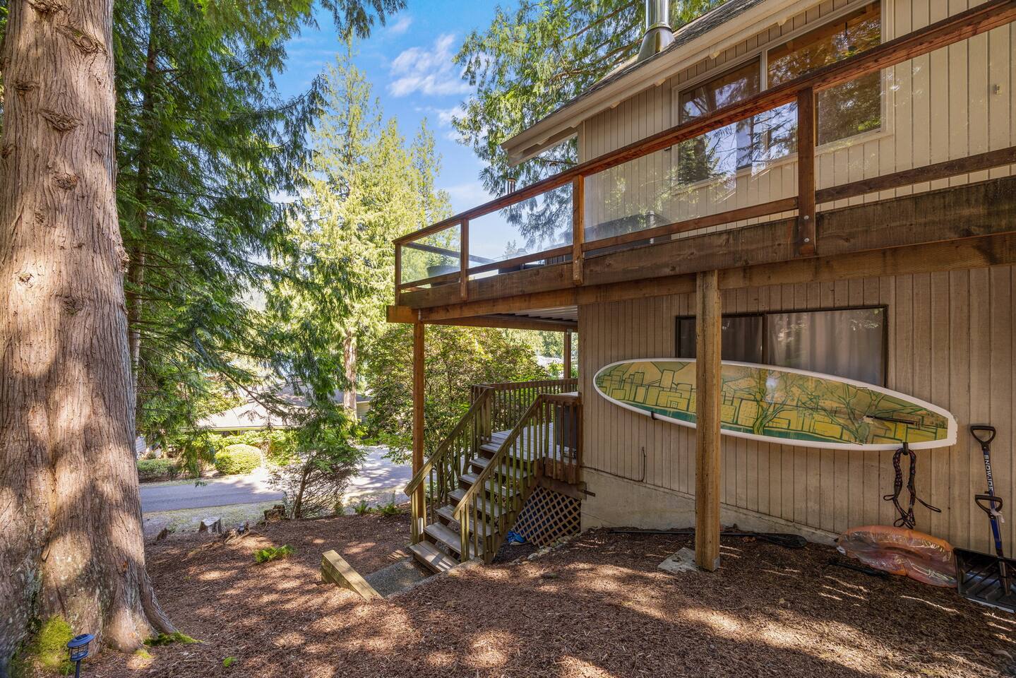 Kayaks and Paddle Boards are available to guests and can be found on the left side of the house (while facing the lake). Sun Chairs/Loungers are stored under the lower deck. Kids life vests and wetsuits also provided. There is a propane fire pit on the deck for guest use, and a fire pit at Sofield Park that is available for neighborhood/public use. A maximum of 4 vehicles can fit in our designated parking area in front of the house. Any extra vehicles must be parked in Marina with an SVCA pass. Vehicles parked on street subject to tickets and fines from SVCA